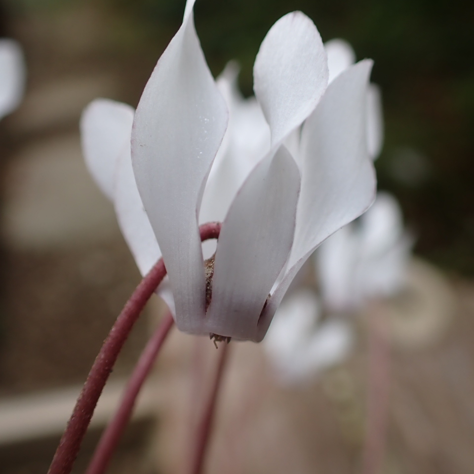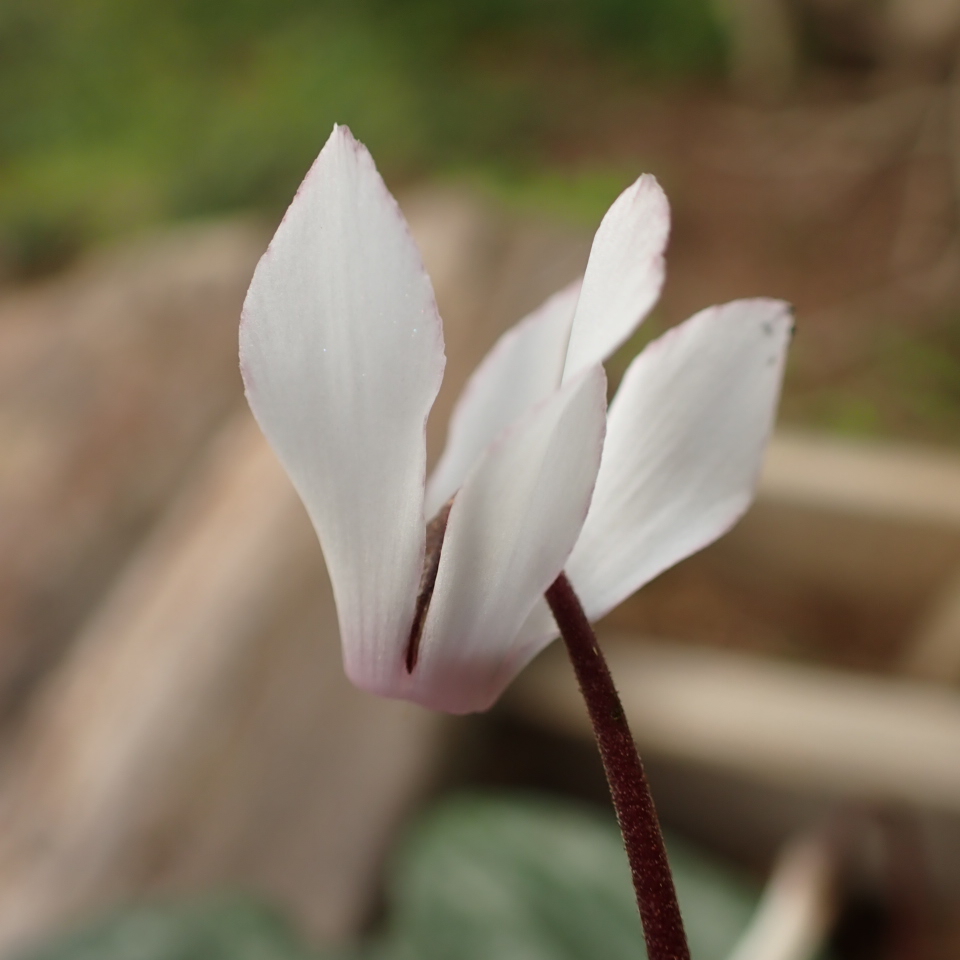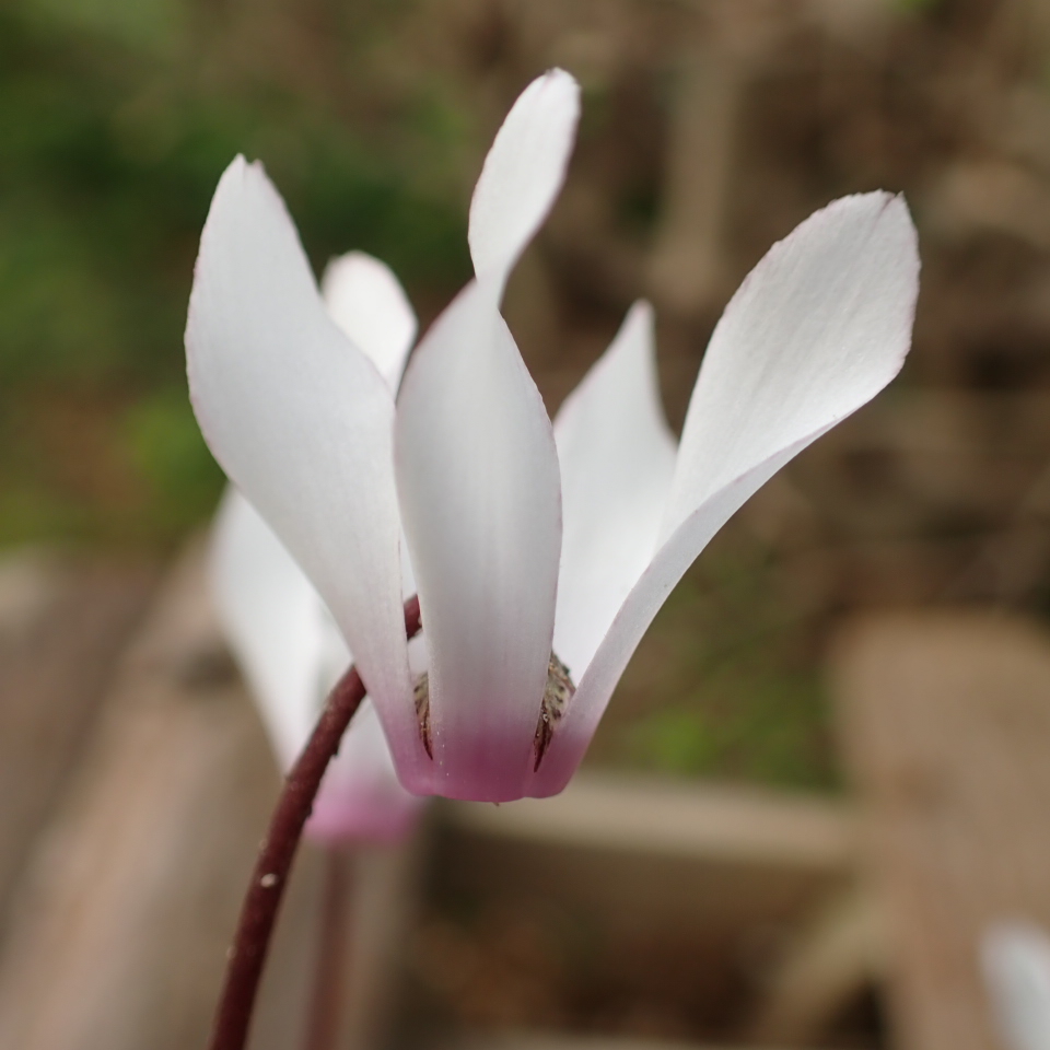 白花であるが花弁の縁にピンク色が入る。