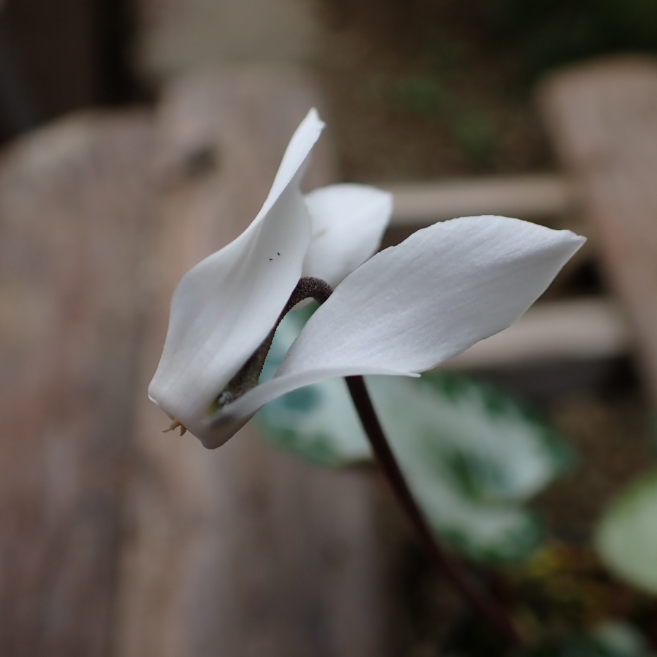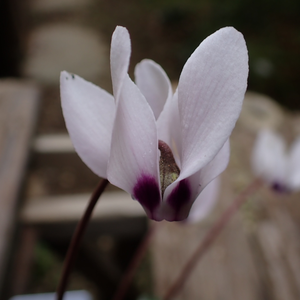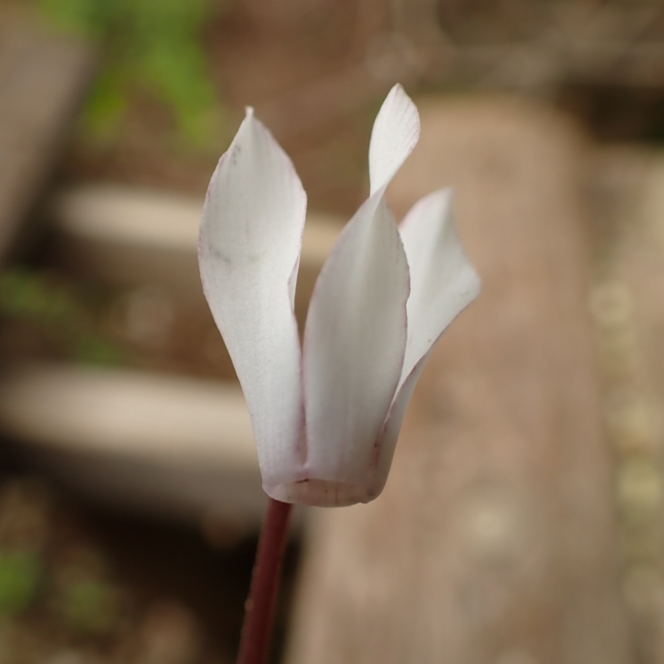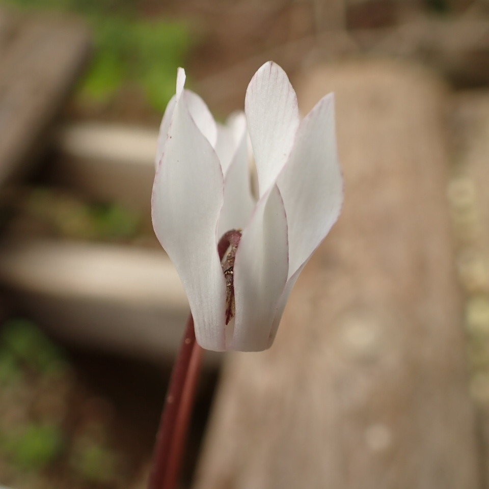 白花であるが花弁の縁にピンク色が入る。